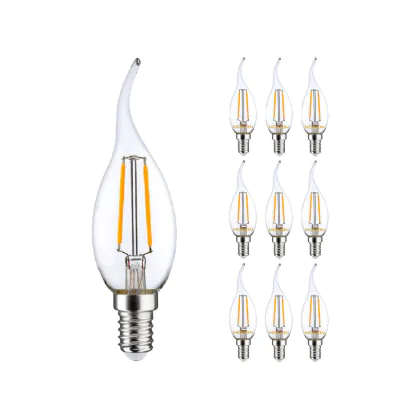 Mehrfachpackung 10x LED E14 Gebogen-tip Kerze Fadenlampe Klar 2.5W 250lm - 827 | Ersatz für 25W