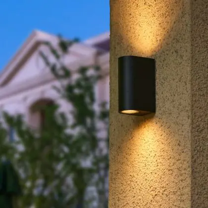 Description D'Lite Applique Murale Vossem Aluminium Noir Up & Down| IP54 - Convient Pour 2x GU10