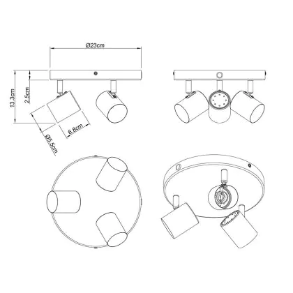 | Nom du fabricant | Trop Sopt Light, 3*GU10,D23*2.5cm Metal, sandy black | |
