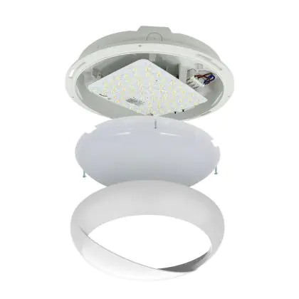 Le Hublot LED Pro V2 12/16/20W 2400lm - 830-840-865 CCT | 325mm - IP65 - Détecteur de Mouvement et de Lumière + Visière Cercle Blanc peut très bien être appliqué au mur qu’au plafond. Ce hublot est un luminaire étanche principalement installé dans les lieux de passages. Avec sa technologie LED Intégré, le hublot Budgetlight à un faible impact sur l’environnement et à une durée de vie pouvant tenir jusqu’à 100000 heures. Ce hublot peut également être installé en extérieur et est capable de supporter des températures extrêmes.  Il offre une couleur de lumière de 3000K - 4000K - 6500K CCT et un flux lumineux de 2400 Lm.