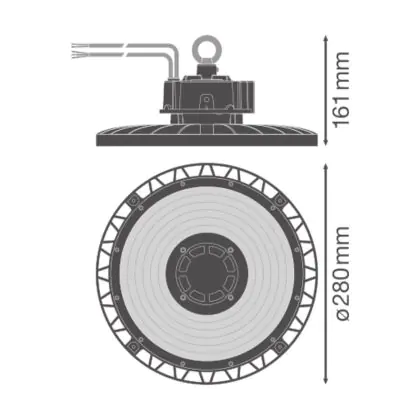 Le Ledvance Highbay LED Gen 5 Aluminium Noir 75W 13500lm 110D - 840 | IP66 - 1-10V Dimmable est un puissant luminaire qui est très souvent utilisé pour l’éclairage industriel. Ce luminaire suspendu propage un puissant flux lumineux de 13500 Lm et offrant un excellent rendu de couleurs par rapport aux luminaires traditionnels. Cet high-bay LED est capable de résister aux différentes températures extrêmes que l’on peut retrouver dans les hangars, entrepôts ou autres halls industriels. La technologie LED Intégré sur ce luminaire permet de faire d’importantes économies d’énergie. En effet, l’high-bay propose une puissance de 75W pour un équivalent de 200W pour les appareils classiques et dispose d’une durée de vie pouvant aller jusqu’à 120000 heures.