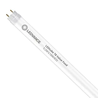 Description Ledvance Tube LED T8 Performance Food (EM/Direct 230V) Standard Output 5.2W 500lm - 833 Blanc Chaud | 60cm - Équivalent 18W