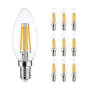 Lot 10x LED E14 Bougie Filament Claire 4.5W 470lm - 827 | Dimmable - Remplacement 40W