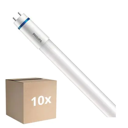 Ce tube LED Lot 10x Philips MASTER LED T8 (EM/Direct 230V) High Output T8 16.7W 3100lm - 840 Blanc Froid | 150cm - Remplacement 58W est l’un des produits les plus éconergétiques en remplacement des tubes T8 classiques. Avec ce tube LED vous êtes donc assuré de sa qualité. Avec une puissance de seulement 16.7 W, ce tube LED a la même intensité lumineuse qu’un tube classique qui consomme 58 W. P>