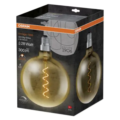 Cette ampoule Osram Vintage 1906 LED E27 Globe Filament Dorée 200mm 5W 300lm - 820 | Dimmable - Remplacement 40W est l’alternative idéale pour la remplacement de votre ampoule classique de 40 W. La technologie LED intégrée vous offrira de nombreux avantages. Les ampoules à incandescence traditionnelles ont une durée de vie limitée. Cette alternative LED vous permettra de profiter d’un éclairage durable et fiable.