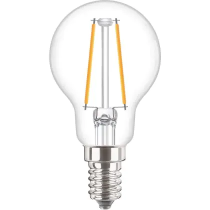 Description Philips Corepro LED Lustre E14 Boule Filament Claire 2W 250lm - 827 Blanc Très Chaud | Équivalent 25W