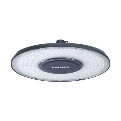 Le Philips Highbay LED CoreLine Aluminium Gris 55W 10000lm 90D - 840 Blanc Froid | IP66 - Dimmable, Dali est un puissant luminaire qui est très souvent utilisé pour l’éclairage industriel. Ce luminaire suspendu propage un puissant flux lumineux de 10000 Lm et offrant un excellent rendu de couleurs par rapport aux luminaires traditionnels. Cet high-bay LED est capable de résister aux différentes températures extrêmes que l’on peut retrouver dans les hangars, entrepôts ou autres halls industriels. La technologie LED Intégré sur ce luminaire permet de faire d’importantes économies d’énergie. En effet, l’high-bay propose une puissance de 55W pour un équivalent de 250W pour les appareils classiques et dispose d’une durée de vie pouvant aller jusqu’à 100000 heures.